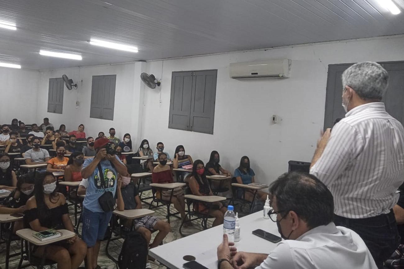 Victor Caldas, morador de Baião que cursa Direito pelo “Forma Pará” no município de Mocajuba, na mesma região, falou sobre sua experiência em fazer parte do Programa, e incentivou os presentes a aproveitarem a oportunidade, além de dar informações para quem vai fazer o processo seletivo especial. “O ‘Forma Pará’ é um programa magnífico! Um excelente projeto, que é voltado para a realidade do nosso Estado. A prova é acessível, com questões ligadas a nossa região. Eu e minha turma somos muito gratos ao Programa”, enfatizou o estudante.