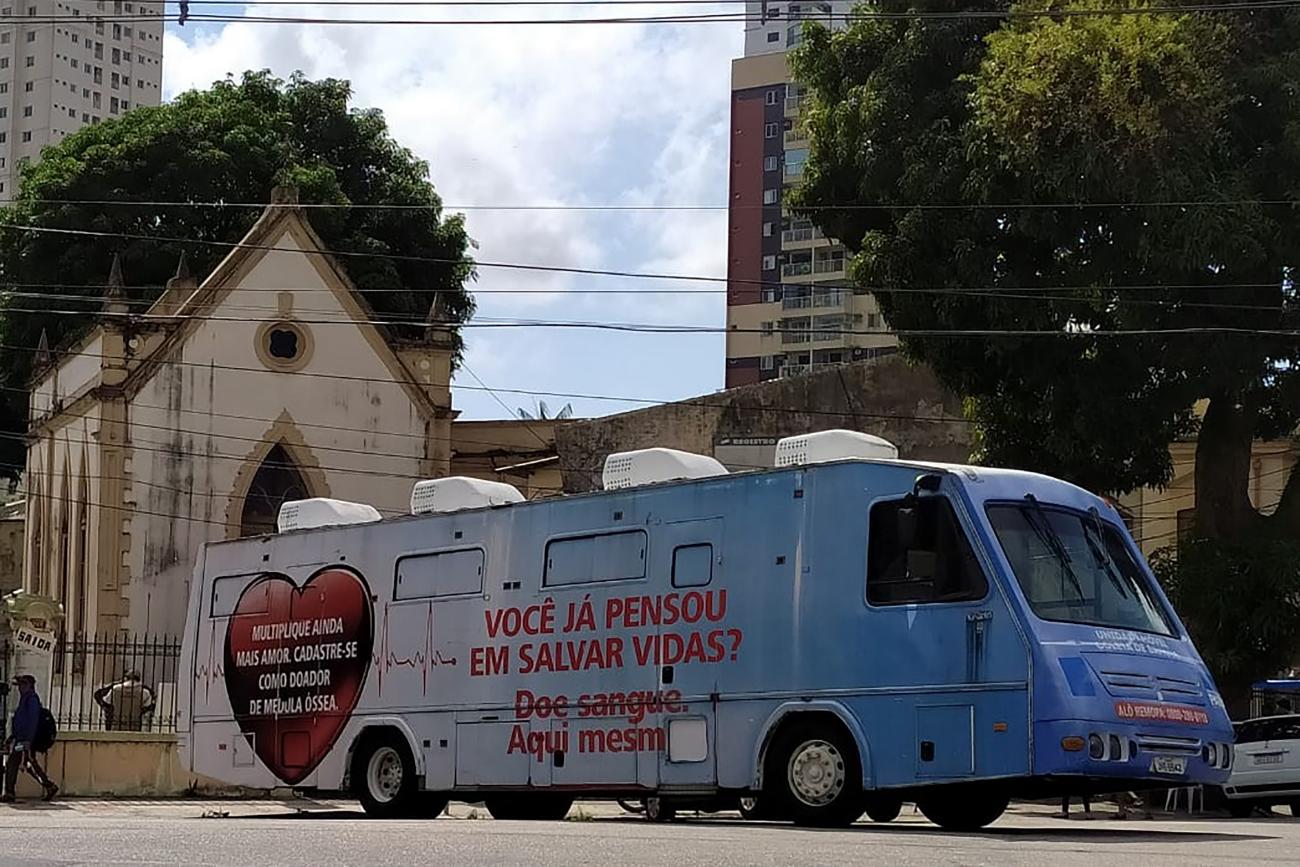 Unidade móvel da Fundação Hemopa em frente à Santa CasaFacilidade - A ação, realizada na Santa Casa, integra o projeto de captação hospitalar da Fundação Hemopa, que culmina com a campanha. O hemocentro leva toda a estrutura de captação ao hospital, incluindo uma unidade móvel, possibilitando que servidores e acompanhantes de pacientes tenham mais facilidade para fazer a doação, informou Olinda Campos, assistente social da Fundação Hemopa.