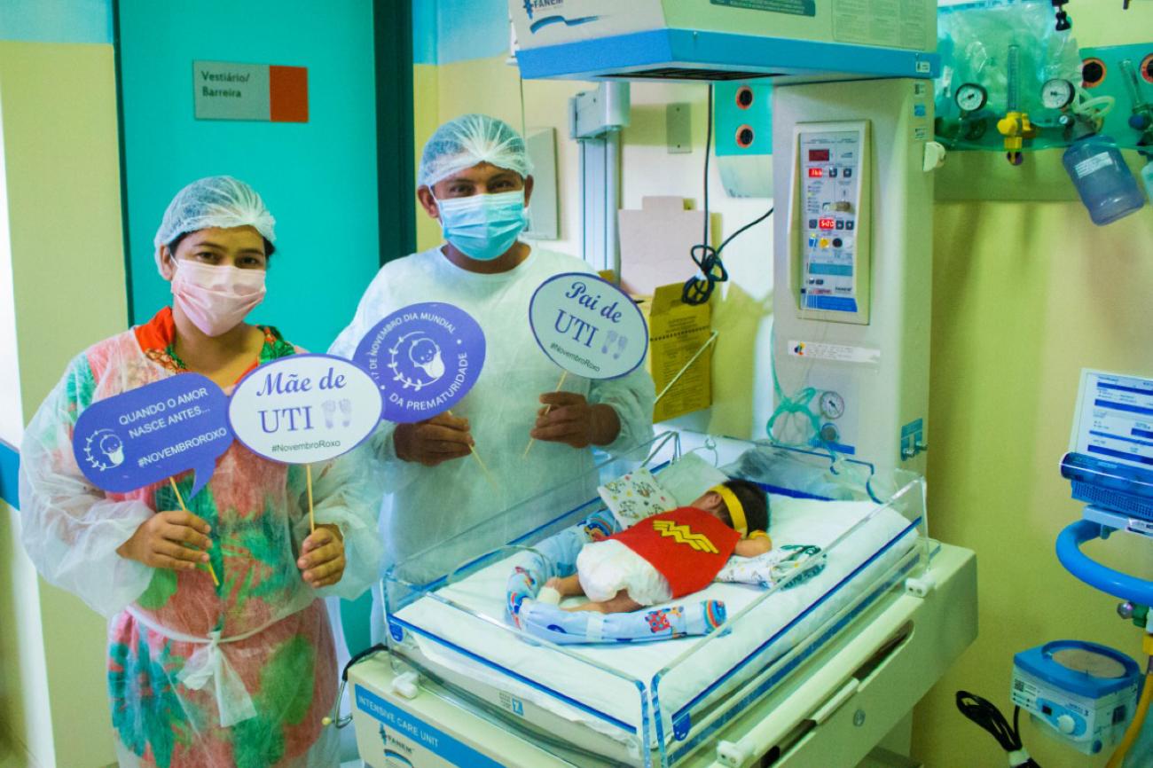 Os pais ao lado do pequeno Enzo Gabriel A gestão do Hospital Regional Público do Marajó (HRPM), em Breves, aderiu à campanha Novembro Roxo, que é a cor símbolo da causa da prematuridade e teve seu ponto alto na última quarta-feira (17), data marcada pelo Dia Mundial da Prematuridade.