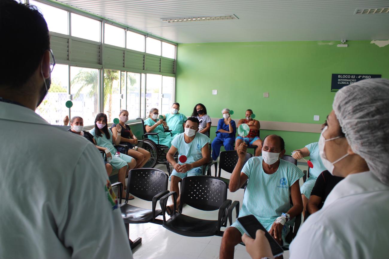 Fachada do HC iluminada em alusão à campanhaNesta sexta-feira (19), profissionais da Fundação Hospital de Clínicas Gaspar Vianna (HC) e residentes reforçaram os objetivos do “Novembro Azul” em uma ação que levou educação em saúde e bem-estar aos usuários em tratamento em uma das clínicas de tratamento da instituição.