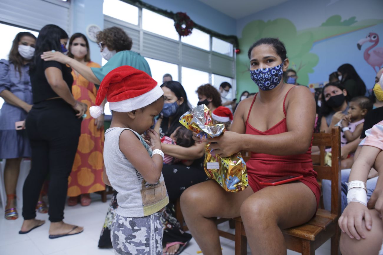 A distribuição de presentes e as mensagens de esperança marcaram, mais uma vez, a tradicional celebração de Natal da Fundação de Clínicas Gaspar Vianna (HC) para as crianças em tratamento cardiológico na instituição que é referência para a especialidade no Pará. A comemoração foi realizada nesta quinta-feira (16), e contou com a presença de um Papai Noel voluntário e da primeira-dama do Estado do Pará, Daniela Barbalho, que festejou o retorno ao hospital para a continuidade de ação não realizada em 2020, em função da pandemia.