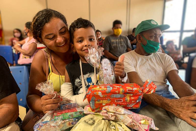 Quase 150 pessoas, entre crianças internadas e em atendimento no Ambulatório e no Pronto Atendimento do Hospital Geral de Tailândia (HGT), no Sudeste do Pará, ganharam brinquedos e tiveram o Natal antecipado. A ação solidária faz parte do Projeto “HGT Solidário”, que também levou brinquedos e cestas de alimentos para famílias em situação de vulnerabilidade do município, na quinta-feira (23). A campanha teve o objetivo de promover a solidariedade e oferecer bem-estar a usuários e demais membros da comunidade.