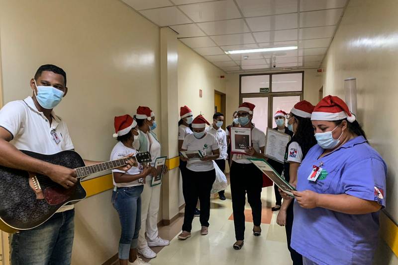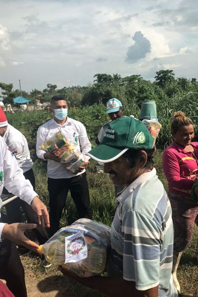 Funcionários e pessoas da comunidade, incluindo comerciantes locais, ajudaram a arrecadar brinquedos e cestas de alimentos