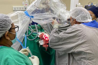 Procedimento durou seis horas e a avaliação é de que foi um sucessoO Hospital Regional do Tapajós (HRT), localizado no município de Itaituba, no sudoeste do Pará, deu um importante passo para sua consolidação como serviço de alta complexidade em neurocirurgia na região. Foi realizada no último sábado (15) a primeira microcirurgia neurológica da unidade, procedimento cirúrgico até então inédito no sudoeste do Pará. O paciente foi Gleison dos Anjos Oliveira, de 40 anos, morador de Itaituba.