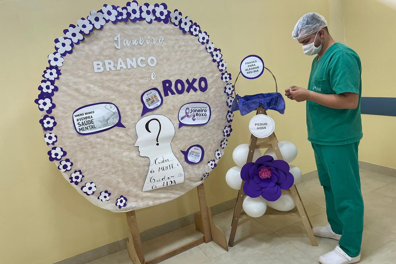 Em janeiro, as cores roxo e branco dão o tom de duas campanhas importantes de conscientização. A primeira trata da importância do combate à hanseníase, e a segunda sobre os cuidados com a saúde mental. Pensando nisso, o Hospital Público de Castelo dos Sonhos (HPCS), por meio da Comissão de Humanização e o Núcleo de Educação Permanente, realizou durante todo o mês de janeiro várias ações voltadas para discutir o adoecimento emocional dos colaboradores, além de promover a conscientização e diminuir o preconceito sobre a hanseníase.