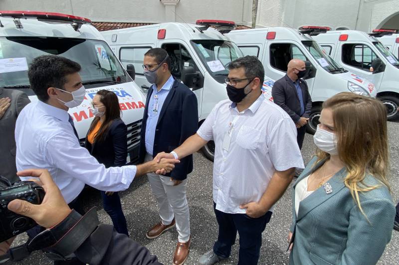 Os veículos foram destinados ao Hospital Ophir Loyola, à Santa Casa de Misericórdia do Pará e ao Hospital de Clínica Gaspar Vianna; para o município de São Caetano de Odivelas, na região Nordeste; para a Regional de Salinópolis, na mesma região; para o 1° Centro Regional de Saúde (CRS) e a sede da Sespa.Governador Helder Barbalho, a primeira-dama, Daniela Barbalho, e outras autoridades no ato de entrega das ambulâncias