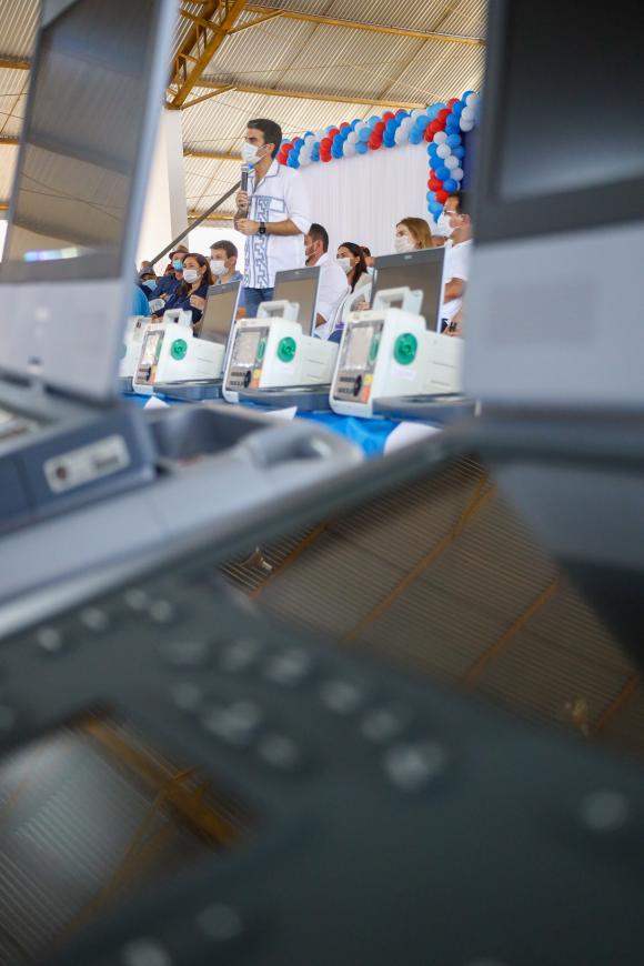 O Governo do Estado realizou nesta sexta-feira (11), em Gurupá, na Ilha do Marajó, a entrega de novos equipamentos de saúde para sete municípios do Arquipélago. Cada localidade recebeu um ultrassom e um cardioversor, equipamento utilizado interromper a arritmia cardíaca e devolver o ritmo normal de pulsações.