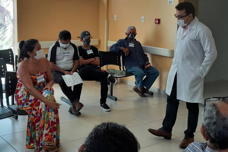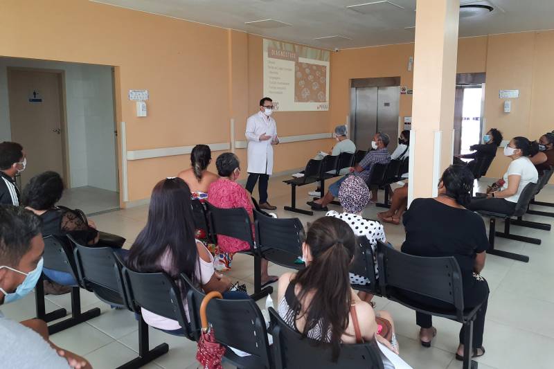Durante a palestra os usuários participaram com perguntas e relatos de convivência com pessoas com Alzheimer. A Odete Oliveira de Lima, 60 anos, aposentada, da cidade de São João de Pirabas, estava aguardando um exame e participou da palestra. Ela conta que convive com a sua mãe que tem a doença do mal de Alzheimer e disse que se deve ter paciência, amor e carinho com essas pessoas. “No início foi meio complicado, depois da morte de meu pai e irmão, percebemos que ela vinha esquecendo as coisas e a ter alucinações. Então nós os filhos tivemos que nos unir para cuidar da minha mãe. É que nem o médico falou, devemos ter paciência e cuidar.”