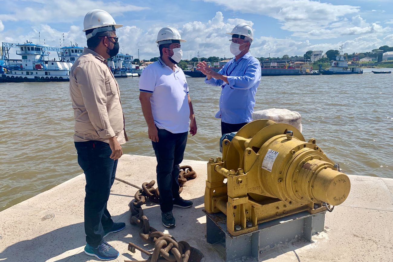 Considerado estratégico para a região, o Terminal vai fazer a integração do modal hidroviário e se juntar aos terminais dos municípios de Terra Santa, Faro, Curuá, Prainha, Almeirim, Santana do Tapará (distrito de Santarém) e Óbidos, já entregues pela CPH.O presidente da CPH, Abraão Benassuly, (d) e o secretário Regional de Governo do Oeste, Henderson Pinto (c) na visita técnica