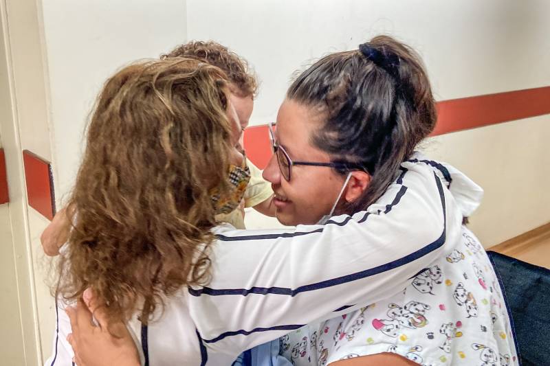 Apesar dos projetos de humanização desenvolvidos na unidade, como as vídeochamadas para manter contato com a família durante o período de internação, a saudade do contato físico com o filho, que já perdurava por quase um mês, estava grande.
