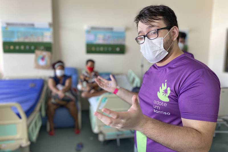 Crianças internadas no Hospital Metropolitano de Urgência e Emergência (HMUE), gerenciado pela Pró-Saúde, em Ananindeua, na Grande Belém, receberam visitantes especiais nesta semana. Os jovens voluntários do grupo “Adote um Sorriso”, que desenvolve ações em unidades hospitalares e comunidades da Região Metropolitana de Belém (RMB), motivaram os pacientes em atendimento nas enfermarias da clínica pediátrica e ensinaram como fazer a correta lavagem das mãos.