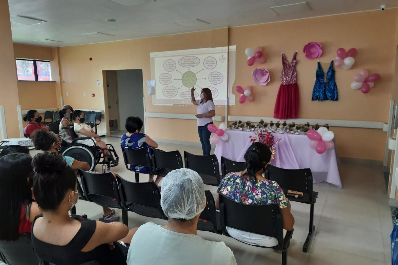 Funcionária Sâmia SouzaA funcionária Sâmia Souza, 37 anos, auxiliar de Higiene e Limpeza, disse que “é muito gratificante trabalhar em um hospital que se preocupa com o bem-estar de suas colaboradoras”. A programação inclui também usuárias internadas e suas acompanhantes.