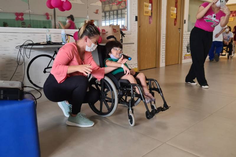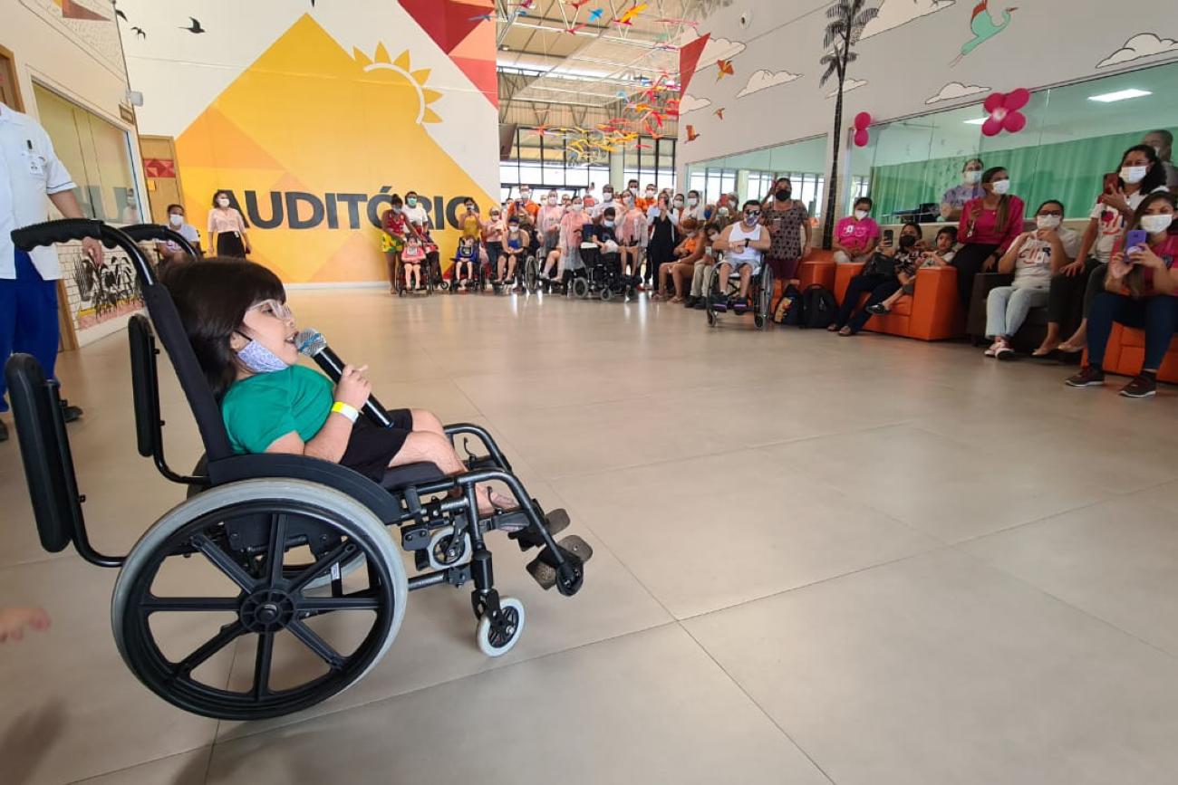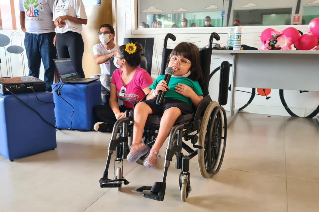 A menor é usuária de cadeira de rodas (novo termo para cadeirante) e recebe assistência com a equipe multiprofissional do Centro de Reabilitação cerca de três anos. “Ela faz reabilitação e seu estado de humor é ótimo. Ela é sempre é muito extrovertida. Adoramos o atendimento aqui no CIIR. Atualmente, Nicole faz Fisioterapia e Terapia Ocupacional”, destacou a mãe da menina, que demonstrou sua alegria e descontração ao afirmar: “Eu cantei muito. Foi um sucesso”. Foi mesmo!. O público cantou e interagiu com ela.