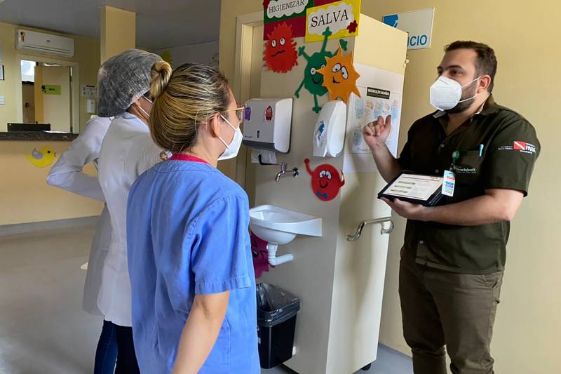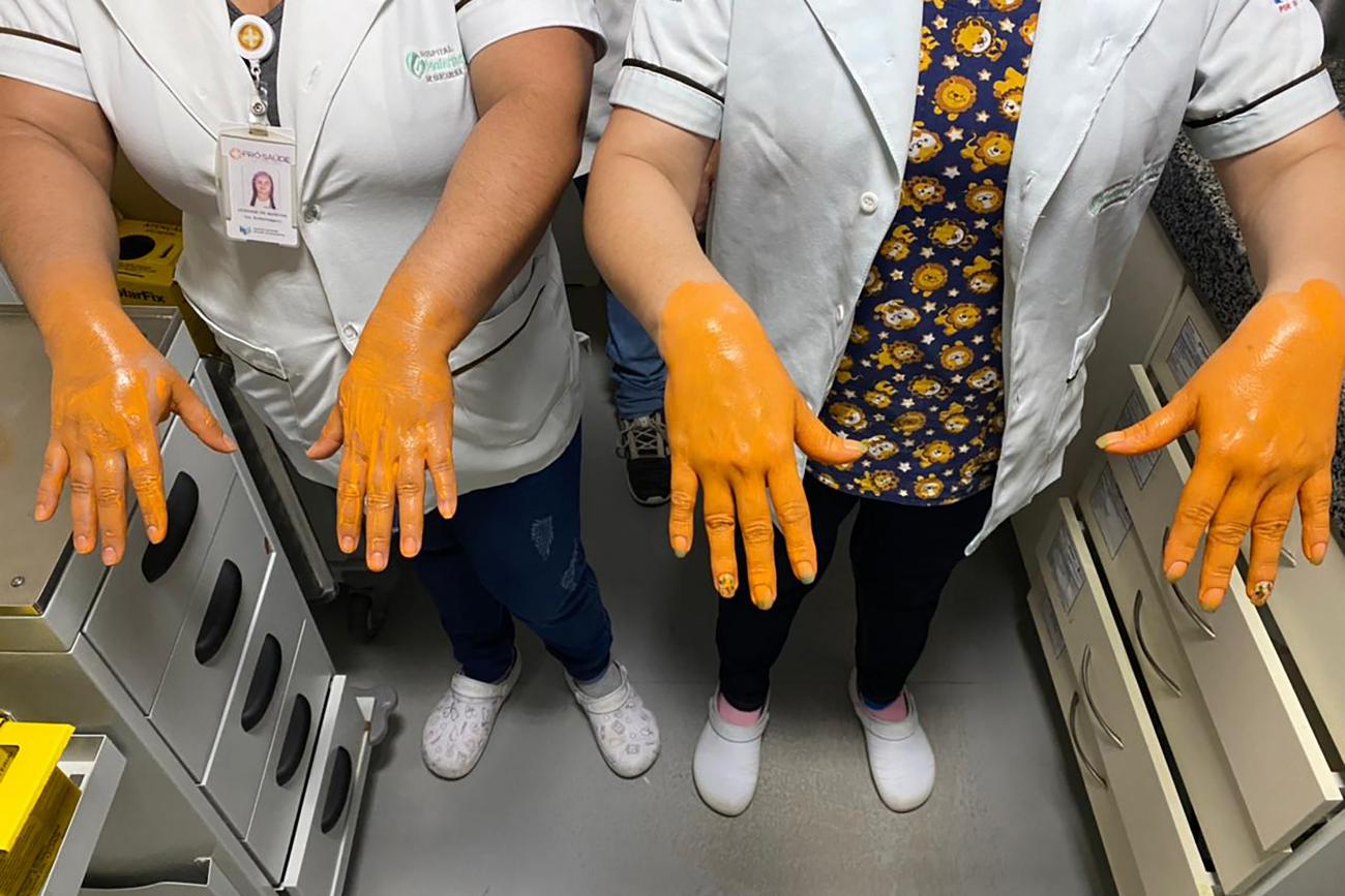 Na atividade, os profissionais espalharam tinta nas mãos, simulando a sujeira que não fica visível no dia a dia, para fazer a lavagem sem olhar. “Com a aplicação correta da técnica, não sobram resíduos da tinta, ou seja, da sujeira, mesmo que a pessoa não fique olhando durante o processo, o que evidencia a importância do protocolo”, explica o profissional.