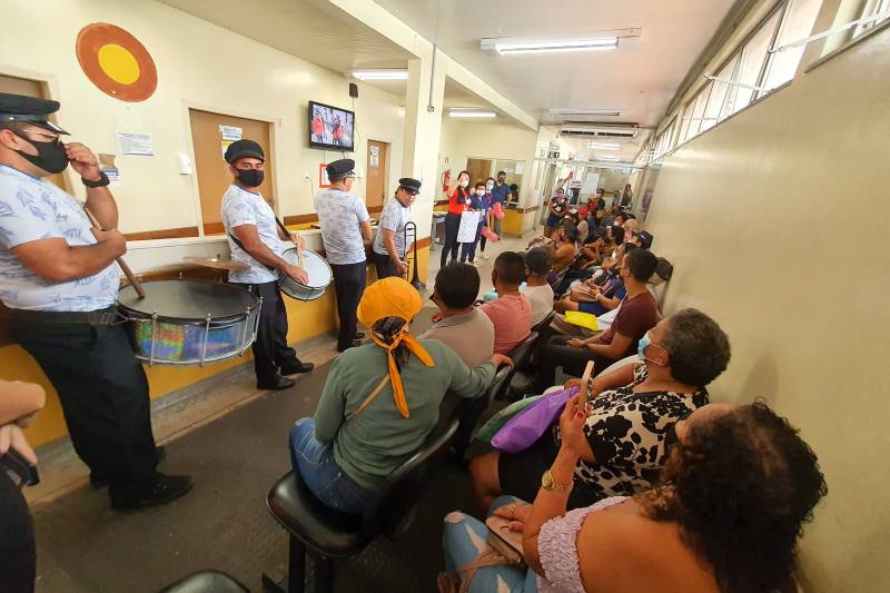 O primeiro andar da Divisão de Radioterapia recebeu decoração festiva para a ação, e também a apresentação da banda Os Cobras do Pará, que tocou pelos corredores enquanto servidores informavam e sensibilizavam para o ato solidário.
