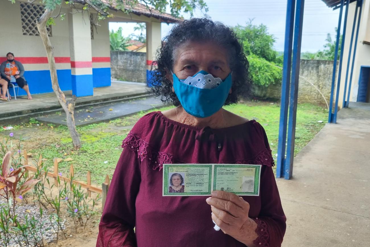 Moradora de São João de Pirabas, Maria Felipa, 92 anos: "O banco não vai mais reclamar da minha RG". “Agora o banco não vai mais reclamar que a minha identidade está velha”, foram com essas palavras que, aos 92 anos de idade, dona Maria Felipa da Costa, recebeu o novo documento de identificação, durante mais uma ação da Caravana de Cidadania e Direitos Humanos, realizada nesta sexta-feira (1), na cidade de São João de Pirabas, nordeste do Estado.