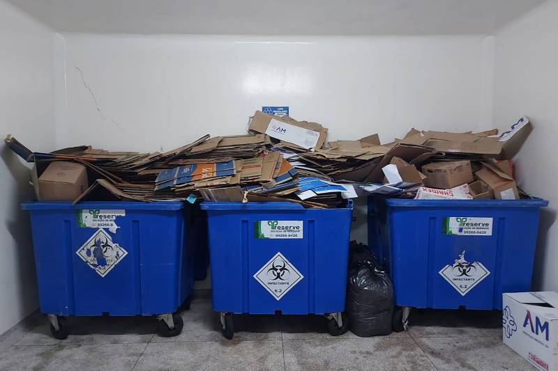 Além disso, embalagens de vacinas e baterias também recebem o destino adequado e o hospital já começou a se preparar para encaminhar para as coperativas e receber papel seco.