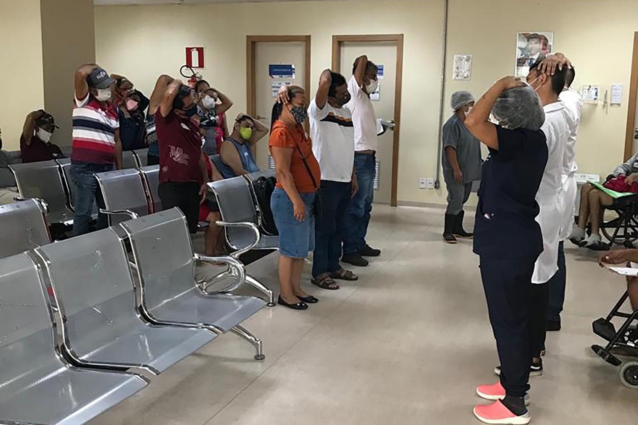 Usuários se exercitaram já nas recepções do Hospital com a ajuda de profissionais e acadêmicos