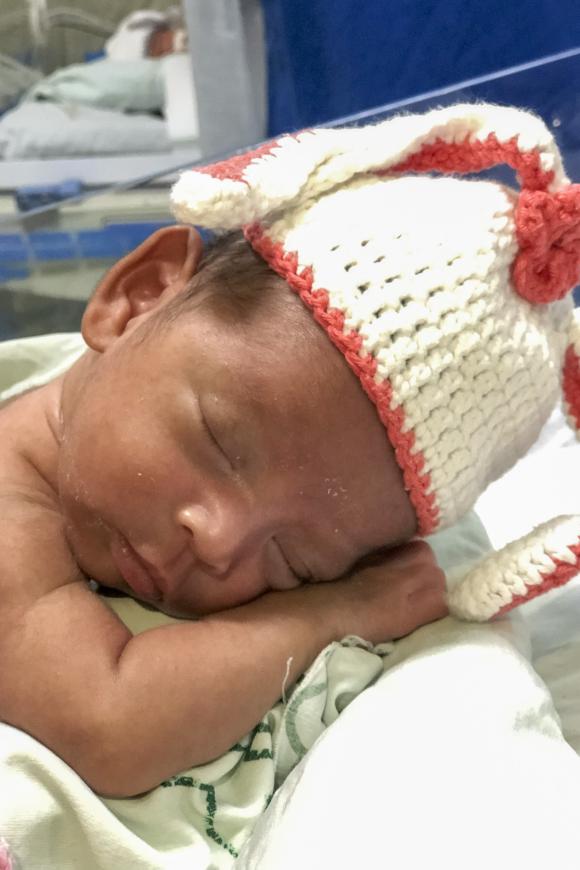 "Fiquei muito emocionada com as fotografias, acalentou meu coração, foi muito marcante. Quero agradecer a todos os profissionais de saúde do HRSP, que tratam meu filho com muito carinho e respeito", conta Joana da Conceição Silva, que acompanha o filho prematuro internado na unidade. “Com muita fé, ano que vêm vou comemorar a Páscoa com meu filho em casa”, declara a mãe.