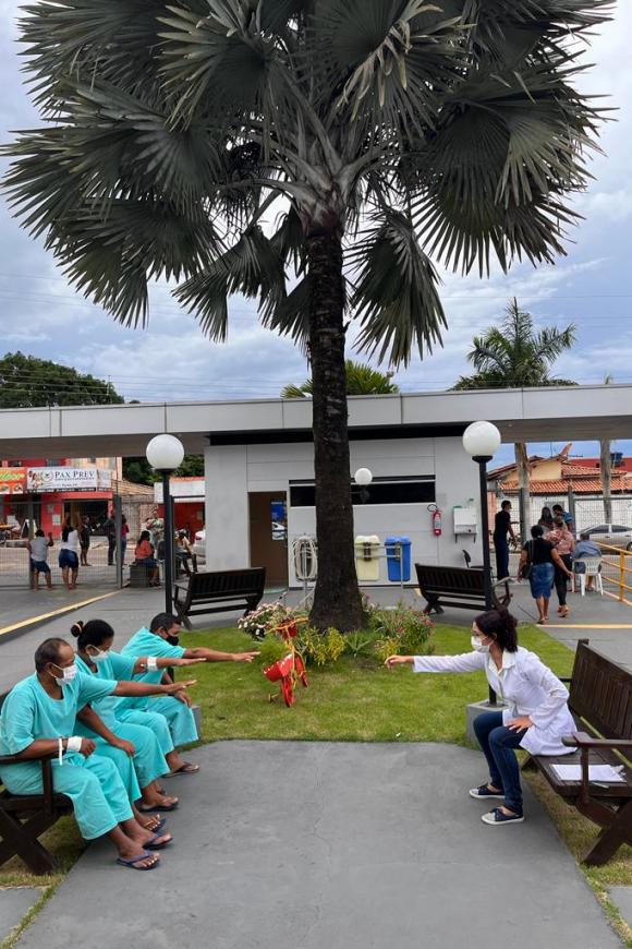 A dança é uma das estratégias adotadas no HRPLSaúde emocional - Ainda segundo a psicóloga Inara Rodrigues, que também é coreógrafa, professora de dança e bailarina formada pela Universidade Federal do Pará (UFPA), com ampla experiência em dançaterapia para doenças neurológicas, em especial as neurodegenerativas, utilizar essas estratégias em um momento que os usuários estão internados auxilia, principalmente, a saúde emocional e o bem-estar.