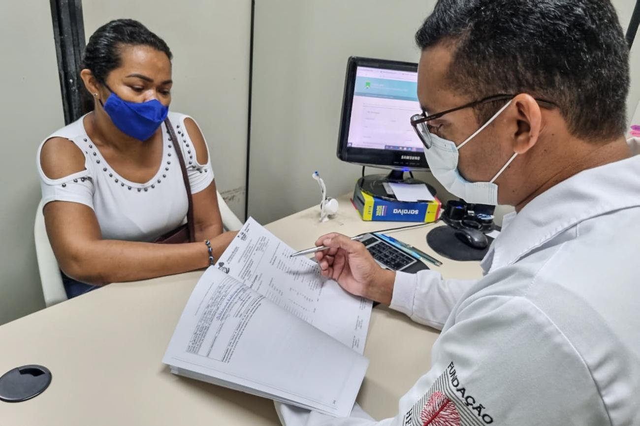 Na Fundação Hemopa, o farmacêutico, Robson Paixão, conversa com a usuária sobre o uso da medicação Nesta quinta-feira, 5 de maio, a Fundação Hemopa une-se ao resto do País em comemoração ao Dia Nacional do Uso Racional de Medicamentos. Um alerta à população sobre os riscos da automedicação e da importância de seguir a Farmacoterapia prescrita, de acordo com a necessidade individual de cada paciente que faz adesão ao tratamento, a forma efetiva e segura para um resultado clínico mais eficaz.