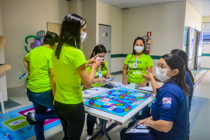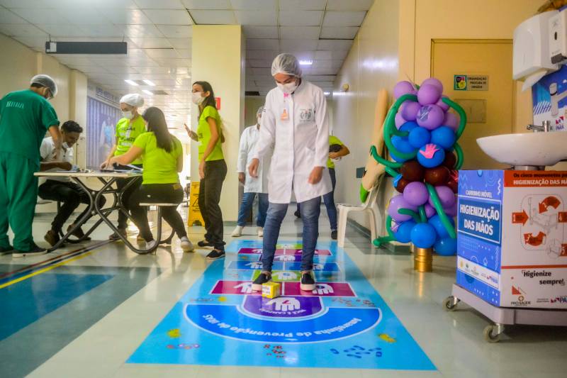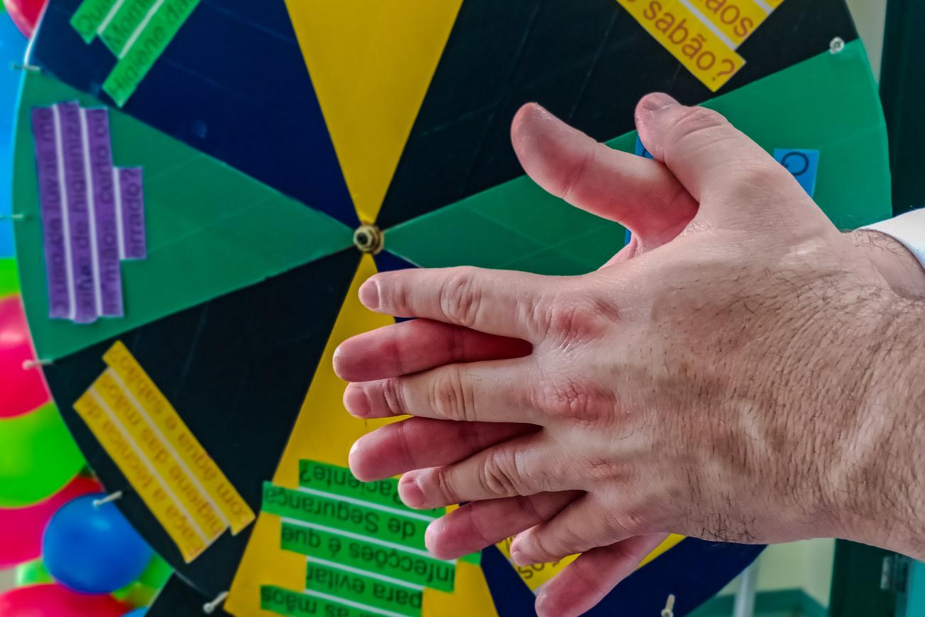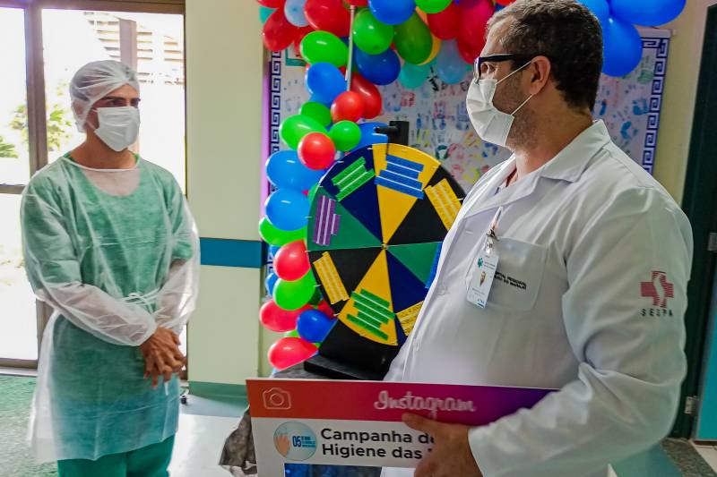 Higienizar as mãos é um ato simples e diminui, consideravelmente, o risco de transmissão de infecções que podem ser prevenidas. Esse é o raciocínio do Dia Mundial da Higienização das Mãos, lembrado anualmente no dia 5 de maio. Com esse propósito, a programação educativa do Hospital Regional Público do Marajó (HRPM), em Breves, começou na quarta-feira (4), no Hall das Clínicas, e em frente ao Refeitório do hospital, com roleta giratória contendo diversas perguntas sobre higienização das mãos, onde os participantes giravam e respondiam, ou faziam um gesto, ou demonstração, conforme o que estava escrito, quem acertou ganhou bombons.De acordo com o enfermeiro do Serviço de Controle e Infecção Hospitalar (SCIH), Higor Tostes, a higiene das mãos é uma medida simples, porém a mais efetiva no controle das infecções. "A sua importância é imensa no contexto hospitalar, reflete em todos os colaboradores e se estende para o cotidiano fora do hospital, no ambiente familiar, na melhor qualidade de vida da sociedade, principalmente com o contexto da Covid-19 e demais agravos relacionados a falta de higiene das mãos’’, disse.