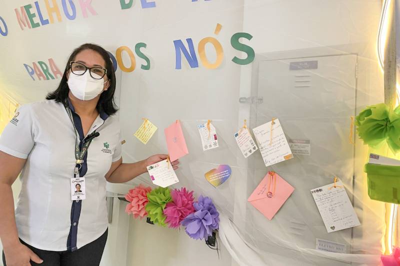 Durante a programação, foi construído o “Túnel da Motivação” incentivando colaboradores e usuários deixarem recadinhos às equipes de Saúde