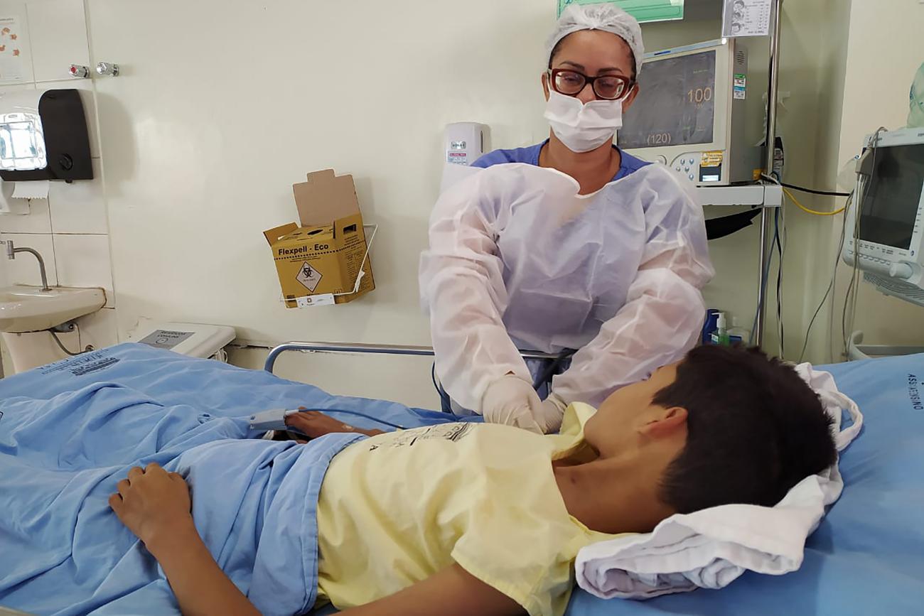 O paciente Werverson é assistido pela técnica de enfermagem Marcilene Abreu“A enfermagem é muito mais que uma profissão, ela é um compromisso social onde por meio da nossa força de trabalho, nós conseguimos proporcionar uma trabalho humanizado, pautado em ciência, resgatando e respeitando a dignidade do ser humano, pensando nos princípios éticos e bioéticos e no respeito à vida”, define o enfermeiro.