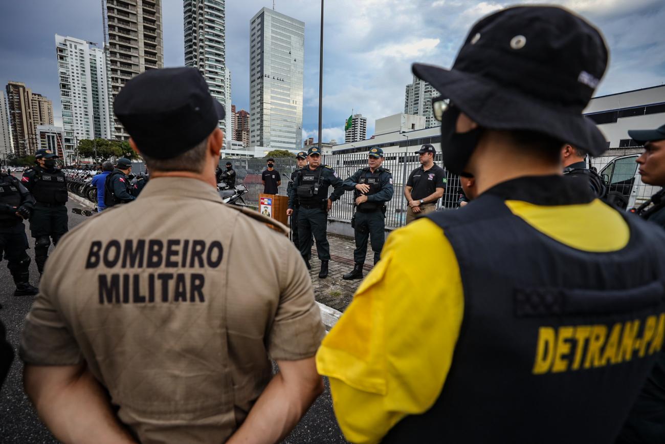 Agentes concentrados no Porto Futuro, no bairro do Reduto, em Belém, para a saída em comboios às ruas e pontos estratégicosNa tarde deste sábado, 14, à Secretaria de Segurança Pública e Defesa Social do Pará (Segup) reuniu, mais uma vez, as forças de segurança do estado e intensificou as Operações Integradas de combate à criminalidade na Região Metropolitana de Belém (RMB). As Operações foram deflagradas, no ponto principal, localizado no Porto Futuro, em Belém.