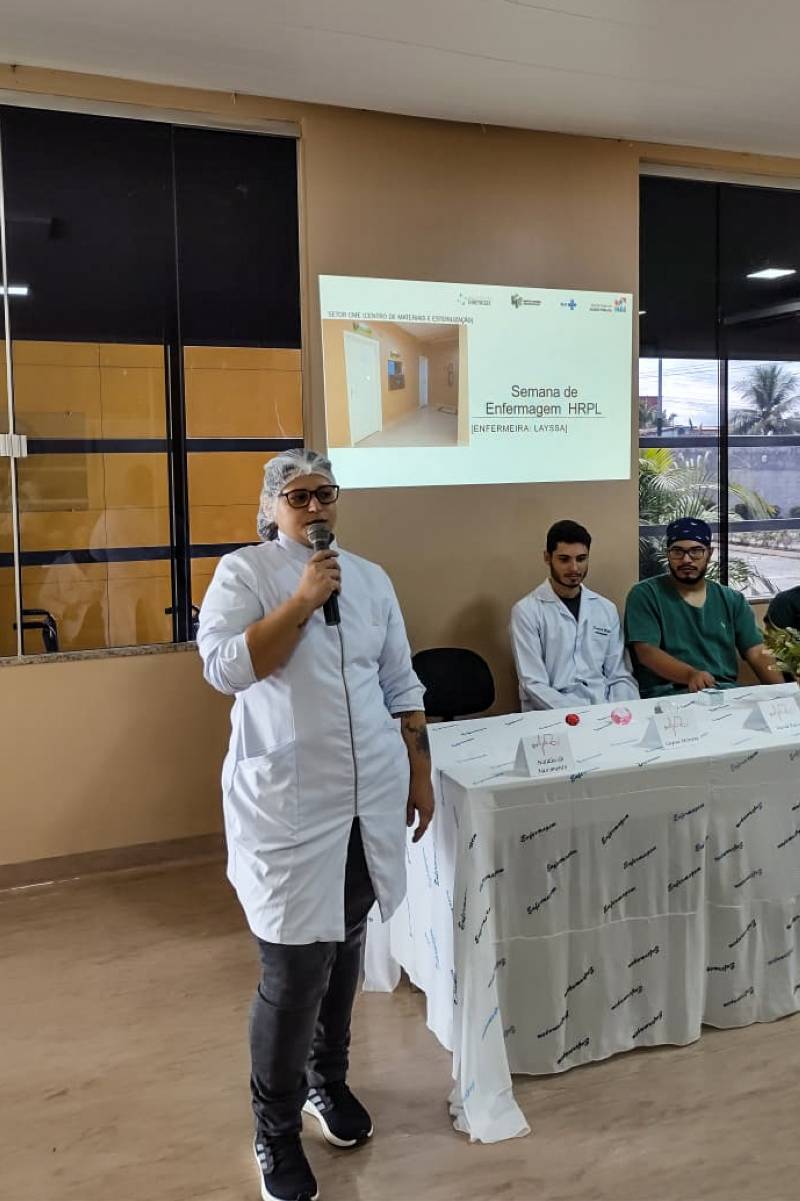 A equipe de Enfermagem do HRPL é composta por 152 profissionais, sendo 117 técnicos de Enfermagem, e 36 enfermeiros, que se somam à equipe multiprofissional formada por médicos especialistas, e especialistas não médicos, como profissionais: assistente social psicólogo, fisioterapeuta, fonoaudiólogo, terapeuta ocupacional, dentre outros envolvidos na assistência à saúde, e no evento foi evidenciada a importância dos profissionais junto aos demais, por meio das discussões de temas que fazem parte do dia a dia dessa equipe no âmbito hospitalar.