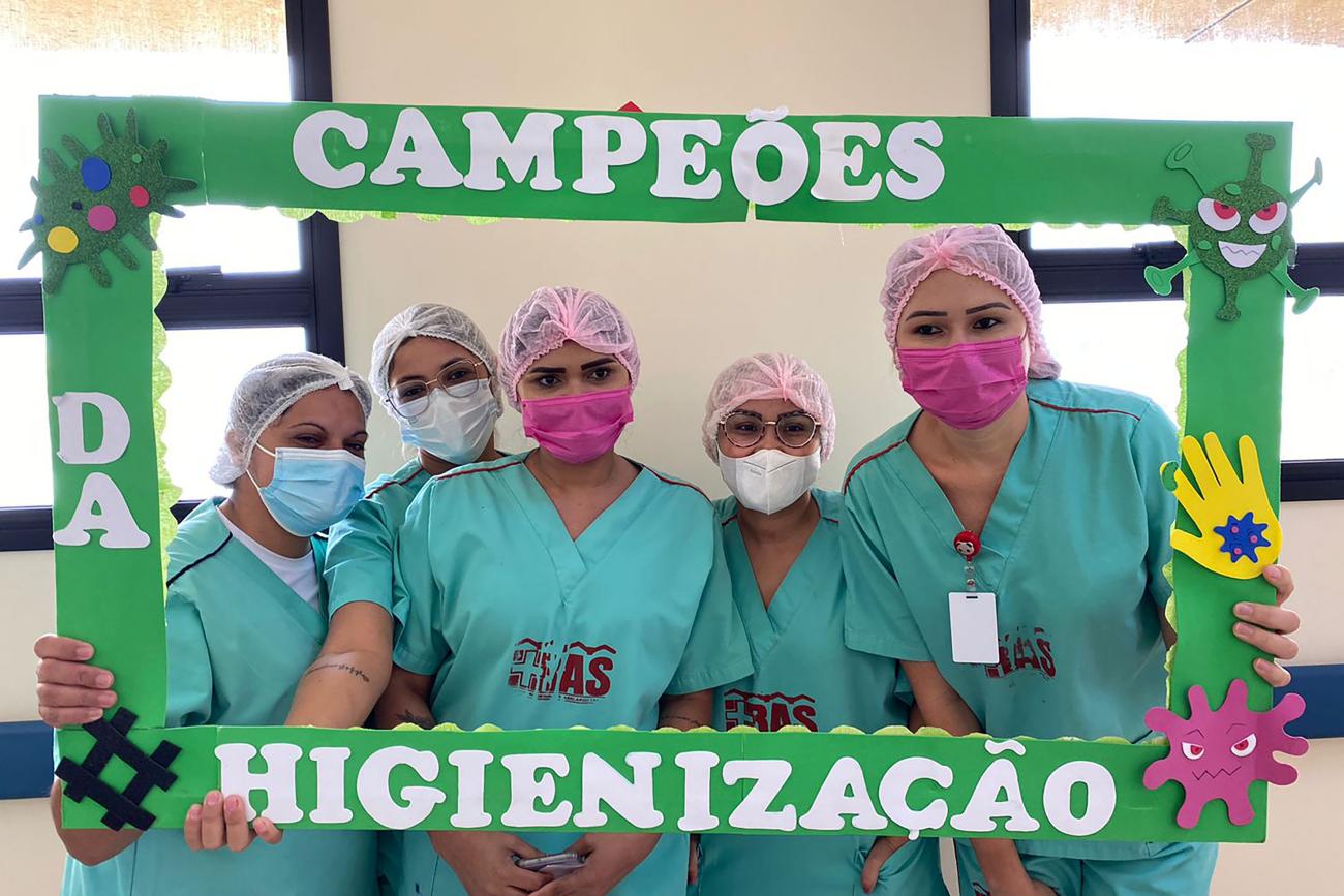 Uma das ações é o big fone da higienização, que consiste em trabalhar as regras de asseio com o servidor que atende a uma ligação aleatória do controle de infecção