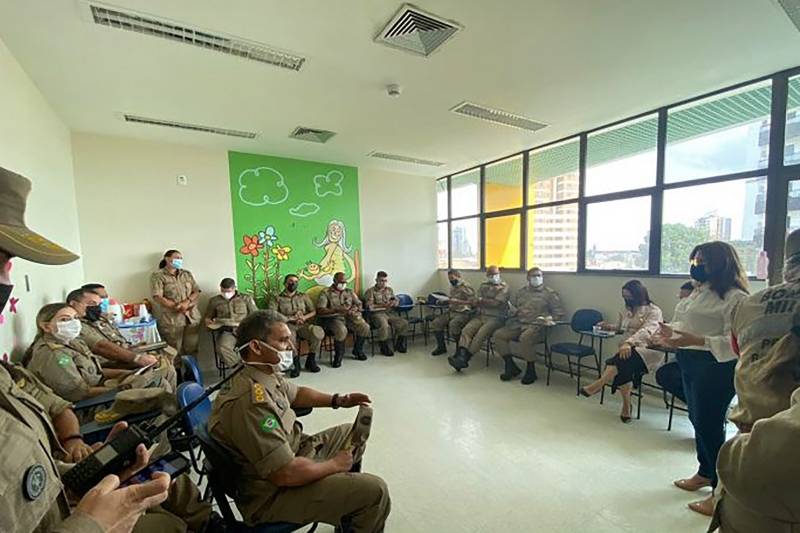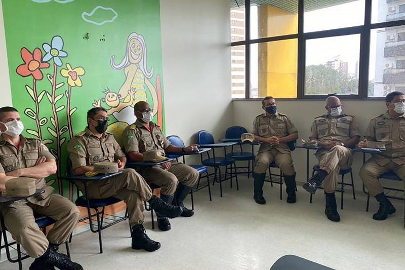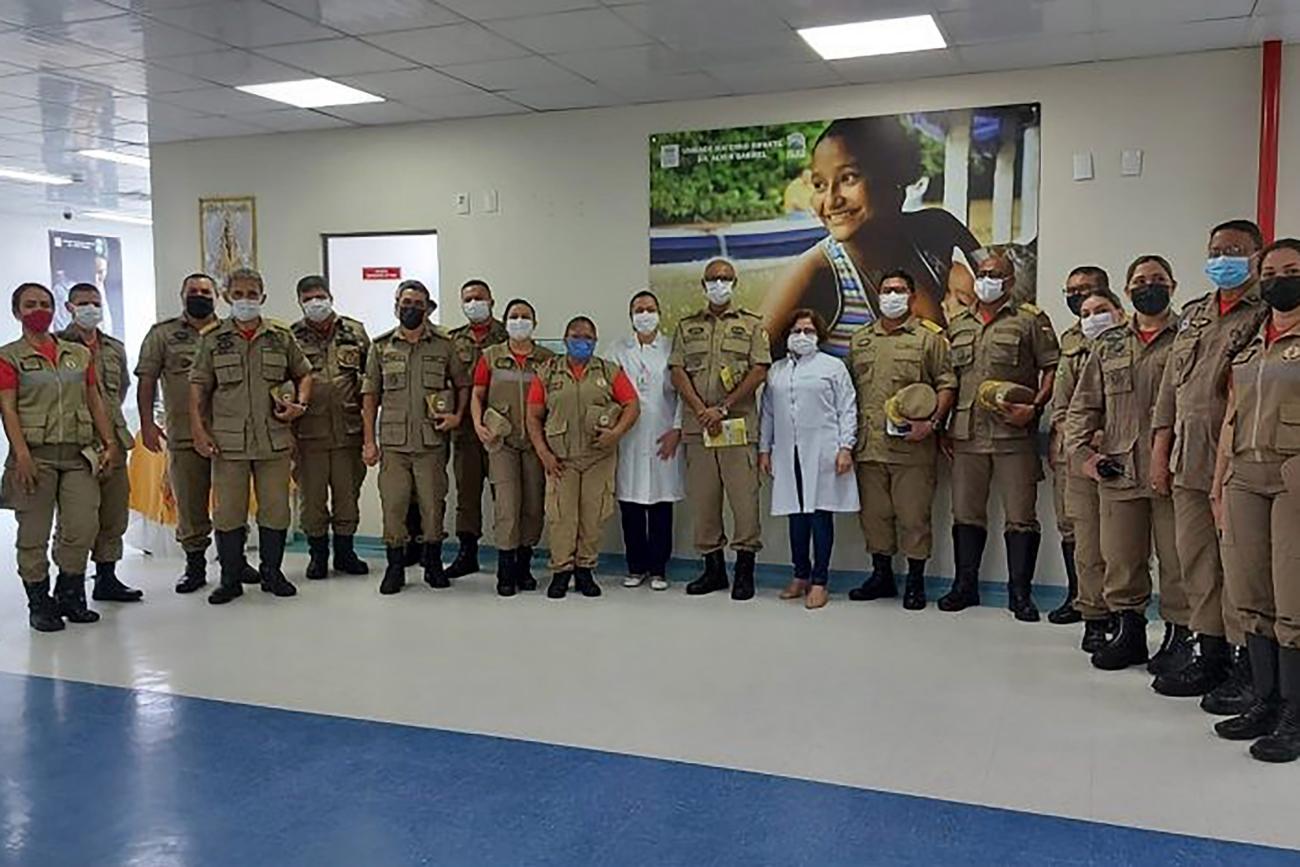 Oficiais do Corpo de Bombeiros em visita ao Banco de Leite da Fundação Santa Casa do Pará