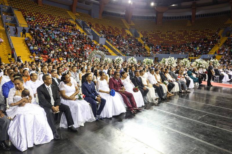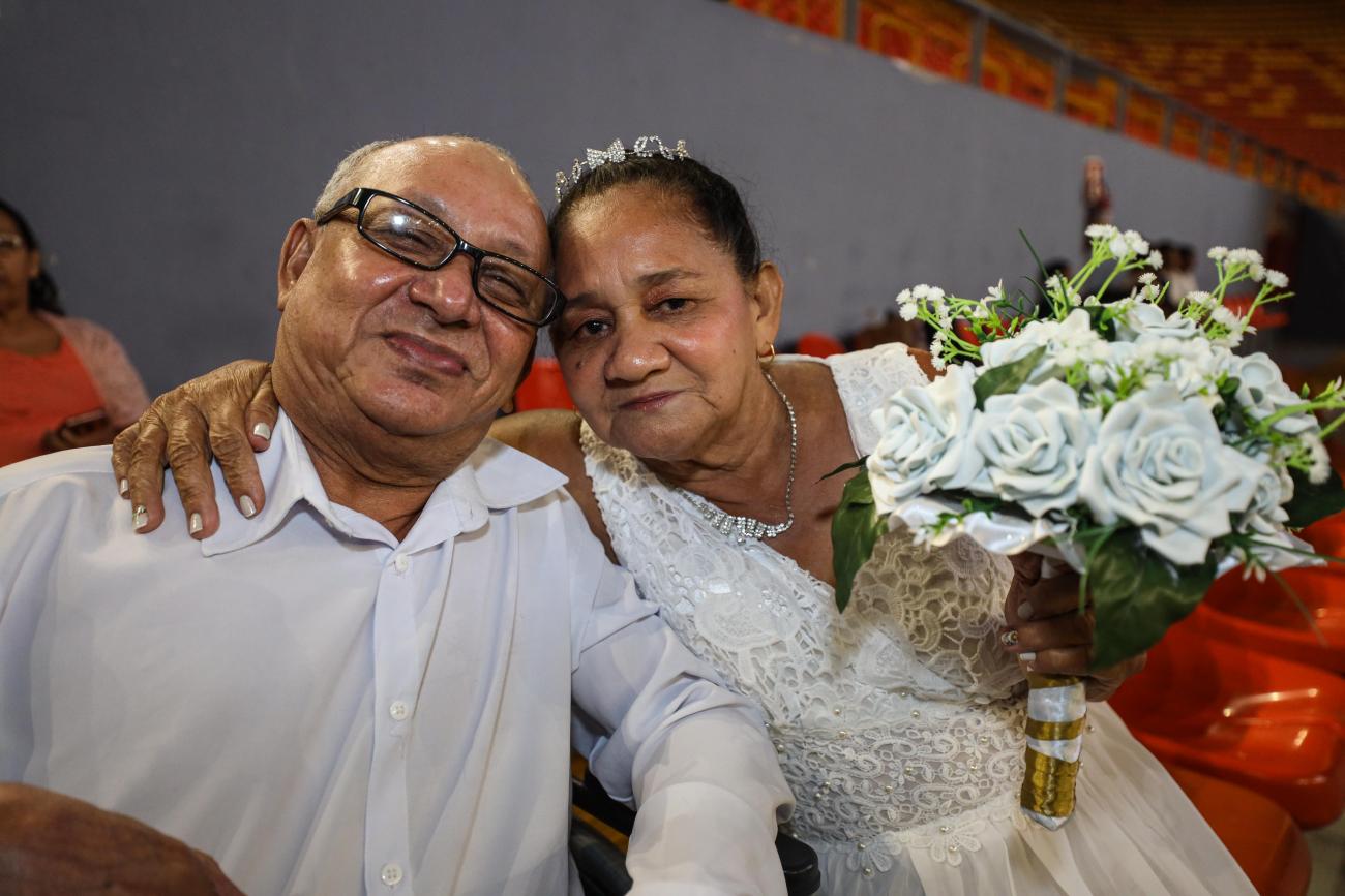 A alegria de Terezinha Lobato e Isaías dos Santos se somou à felicidade de 335 casais que uniram os laços matrimoniais nesta sexta-feira (10), durante evento realizado na Arena Guilherme Paraense (Mangueirinho), em Belém. O evento conta com o apoio do Governo do Pará, por meio da Secretaria de Justiça e Direitos Humanos (Sejudh).