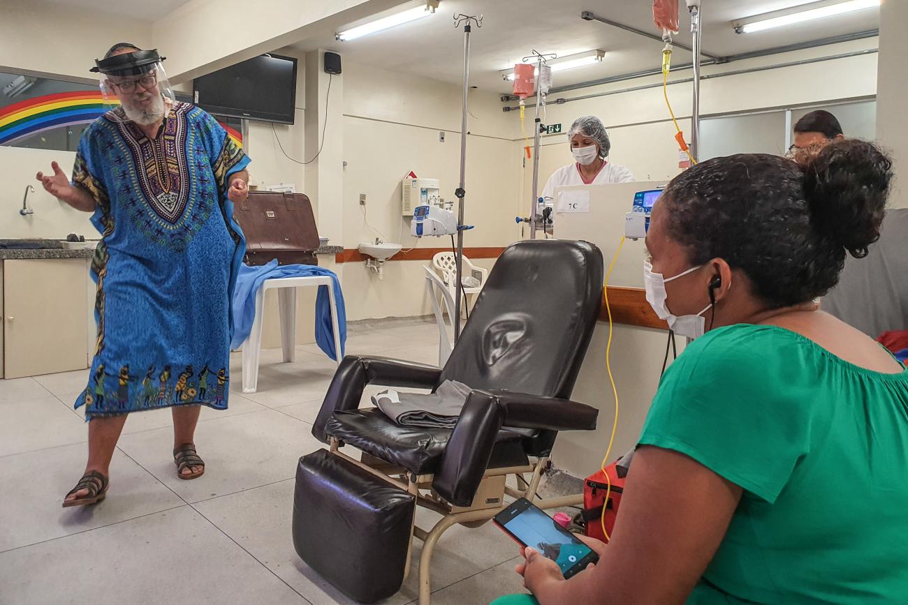 Com o Projeto ‘Amazônia na Mala’, o ator Kadu Santoro levou animação e ajudou a minimizar as dores do tratamento oncológico