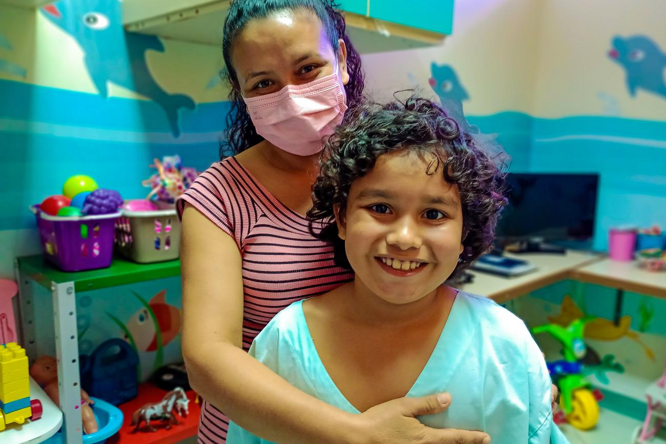 Kásio Brian Viana, de nove anos, que realizou procedimento cirúrgico para apendicite. Ela aprovou a iniciativa do hospital em retornar com o espaço destinado aos menores e jovens. ‘’Isso nos motiva e aumenta nosso entusiasmo. É uma distração a mais, onde as crianças conseguem ter mais habilidades para conhecer certos brinquedos. O meu filho ficou muito feliz com as brincadeiras que a equipe fez. Está aprovado’’.