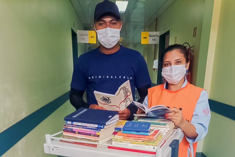 Uma das experiências é o 'Biblioteca Itinerante - Gotas do Saber' que a partir de empréstimos de livros contribui para aliviar a ansiedade durante a internação