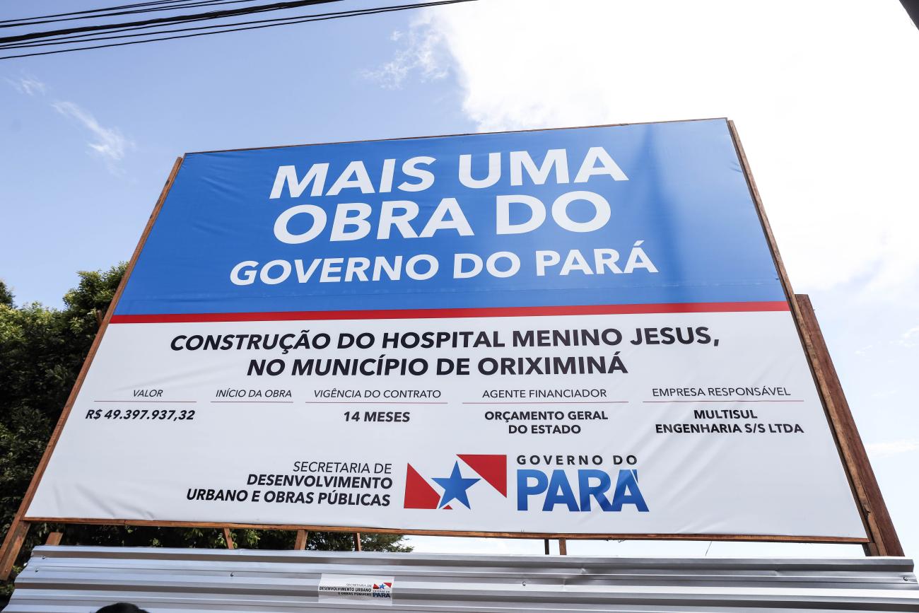 As obras já começaram para atender ao sonho da população de usufruir dos serviços do Hospital Municipal Menino JesusO governador Helder Barbalho assinou na manhã desta terça-feira (21) a Ordem de Serviço para construção do Hospital Municipal Menino Jesus, no município de Oriximiná, no oeste paraense. A iniciativa integra uma série de ações do Governo do Pará, por meio da Secretaria de Estado de Saúde Pública (Sespa), de reestruturação da rede de saúde pública em todas as regiões paraenses. As obras serão executadas pela Secretaria de Desenvolvimento Urbano e Obras Públicas (Sedop).
