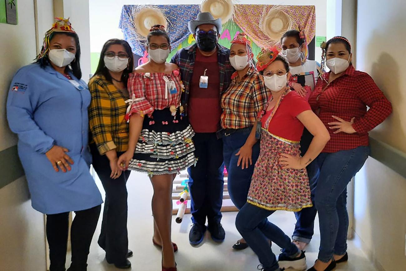 Para comemorar o São João, a equipe multidisciplinar do Hospital Regional Público de Castanhal (HRPC) realizou, na manhã desta sexta-feira (24), um arraial com os pacientes do setor de nefrologia. A manhã foi cheia de festa e música animada, com desfile da quadrilha pelos corredores e interações com os usuários.
