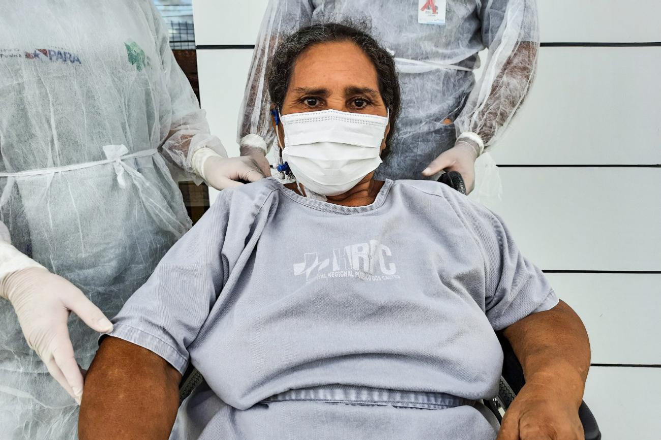 Equipe do Regional dos Caetés garantiu uma 'voltinha' a pacientes da UTI aptos a viver a ação terapêuticaA usária Maria de Oliveira Beniche, 62 anos, da cidade de Irituia, por não poder fazer a cirurgia de apendicite na cidade de moradia, foi encaminhada para o Regional dos Caetés para a Urgência Cirúrgica, e por complicações pós operatório e cardíaca, está em tratamento na UTI há mais de 20 dias. Agora com melhora clínica e conseguindo caminhar, cada passo é uma vitória para ela. Podendo falar e já no seu segundo passeio terapêutico, conseguiu notar a diferença.