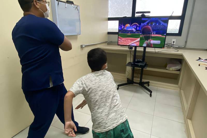 O fisioterapeuta Felix Furtado percebe que o recurso já apresenta bons resultados. "A realidade virtual tem sido uma boa parceira para agregar e levar os pacientes para um mundo diferente, com objetivos terapêuticos. Os pediátricos, como Emanuel, passam a ter esse momento como traumático, saindo do seu quarto, de perto dos seus familiares e brinquedos e ficam com o emocional abalados. Mas esse recursos ajuda a esquecer a atual realidade, movimentando seus membros superiores e inferiores", observou.