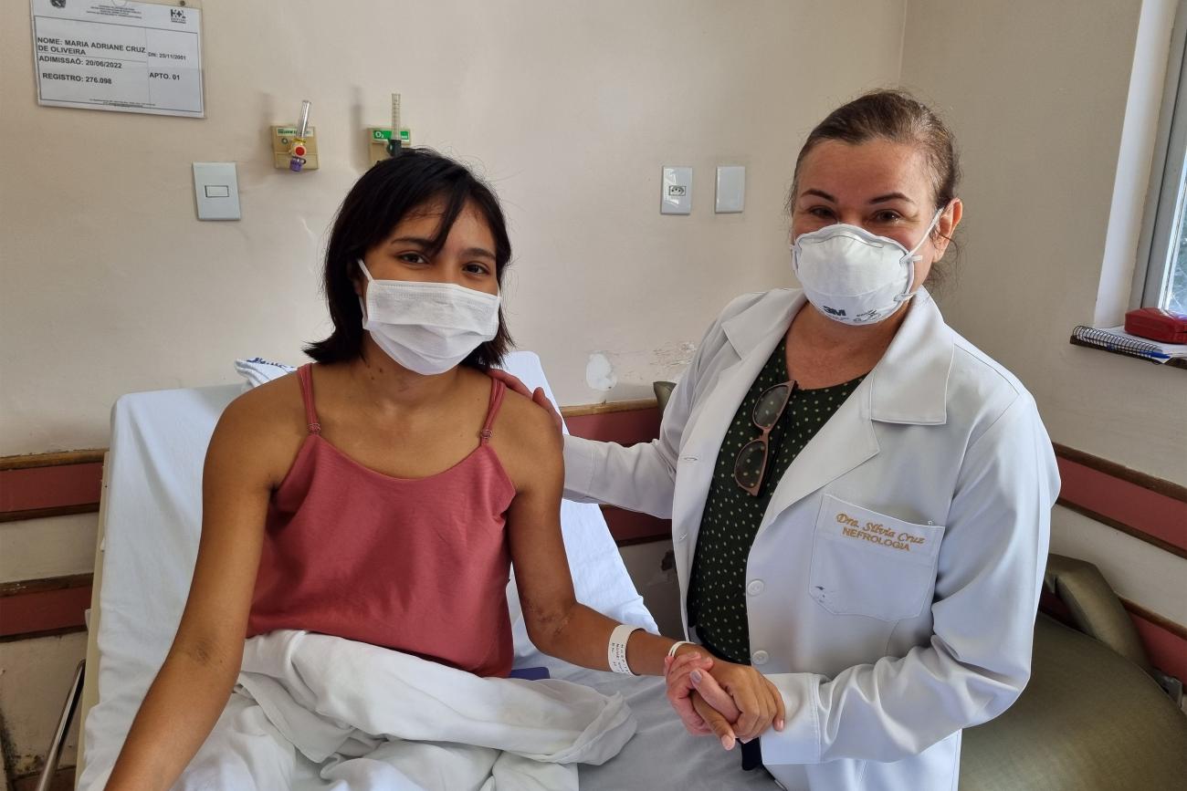 Dra. Silvia Cruz com paciente Maria Adriane Oliveira O transplante foi um sucesso e Adriane se recupera no Hospital Ophir Loyola, onde segue recebendo cuidados da equipe especializada de Transplante Renal. A mãe, Maria Cleia Cruz, já recebeu alta e está bem de saúde. “Era doloroso demais ver a minha filha abatida, triste e, nesses momentos, eu sempre me afastava e aguardava a minha tristeza comigo para não deixá-la pior. Quando eu soube que poderia, decidi doar, pois sei o que ela passou no último ano e isso era angustiante”, recordou.