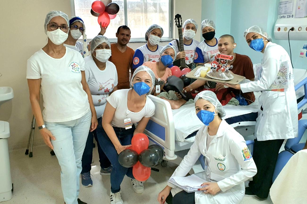 Ele trata de um câncer ósseo e recebeu a equipe multiprofissional e grupos de voluntários para celebrar os seus 19 anos, junto a um dos seus 12 irmãos