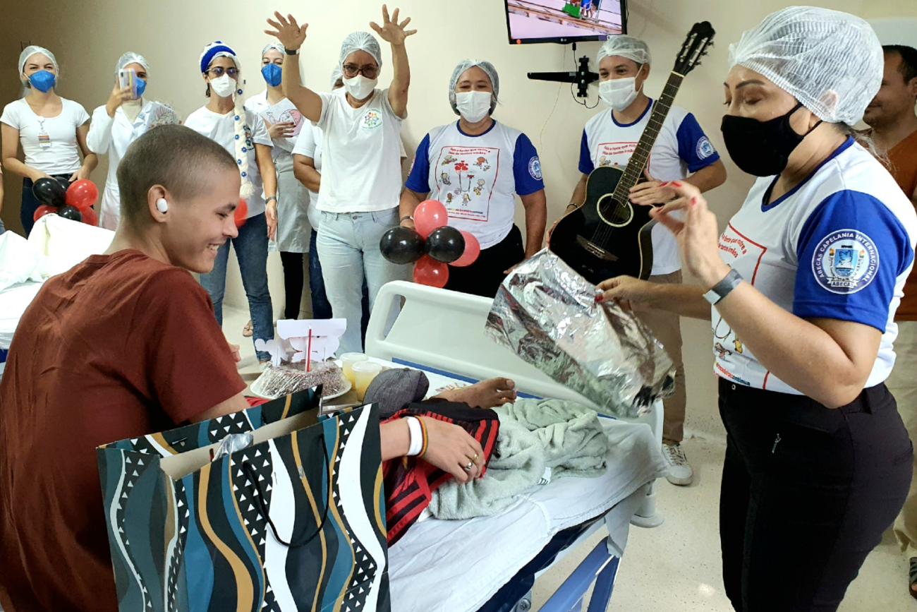 Adolescente ganha festa de aniversário de presente no leito do hospital Octávio Lobo