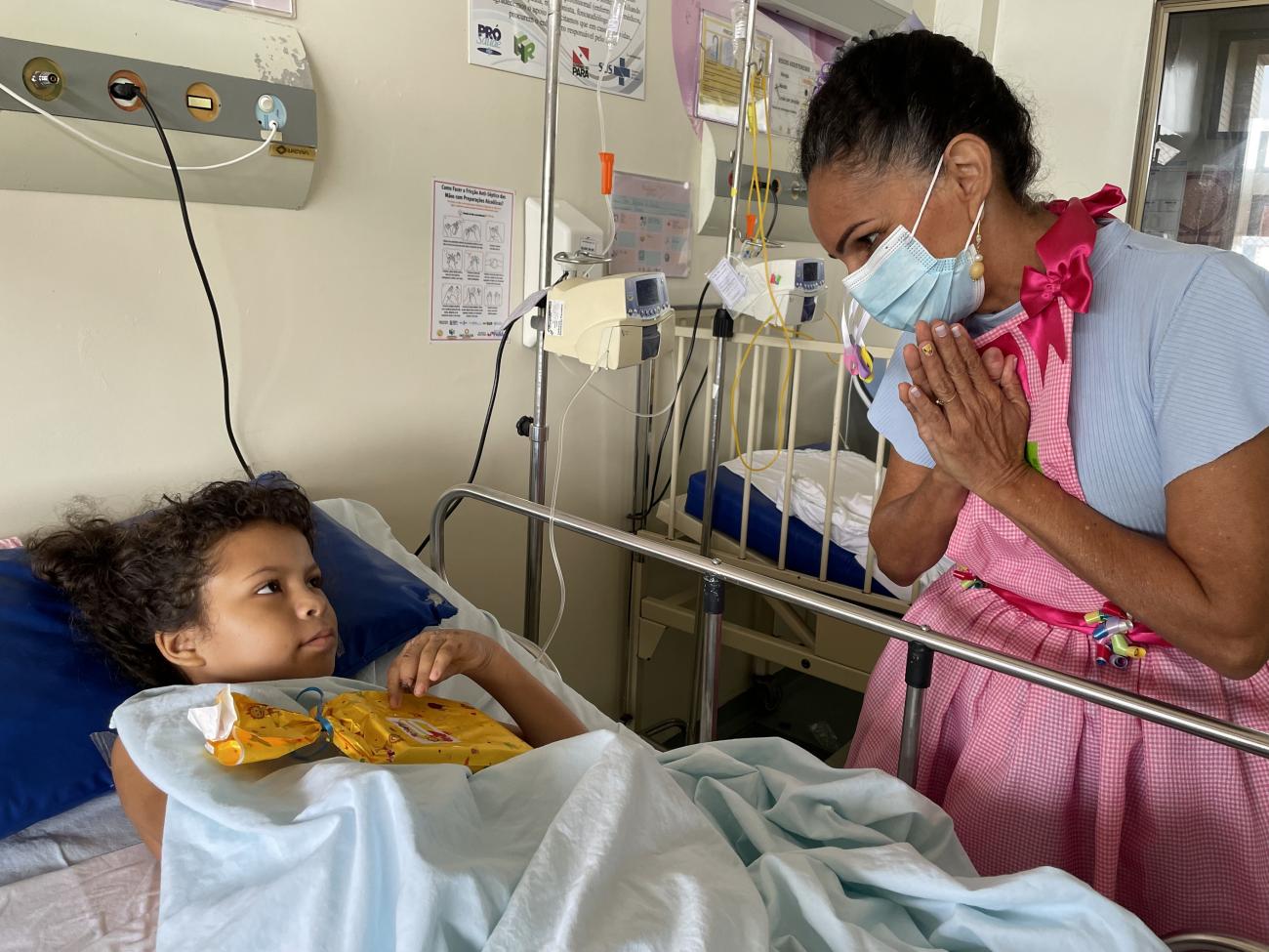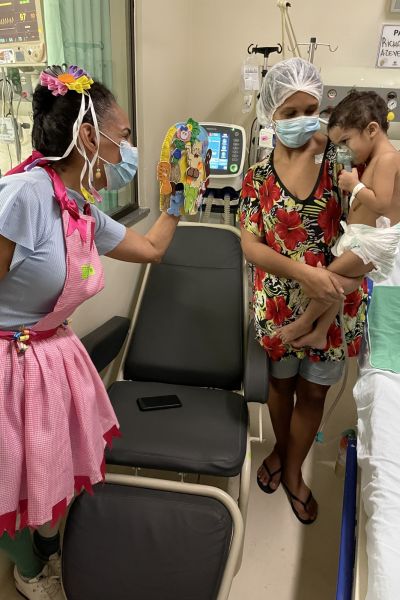Os pequenos em atendimento na clínica e UTI pediátricas também receberam a visita da "Vovó Ivanice", voluntária da unidade