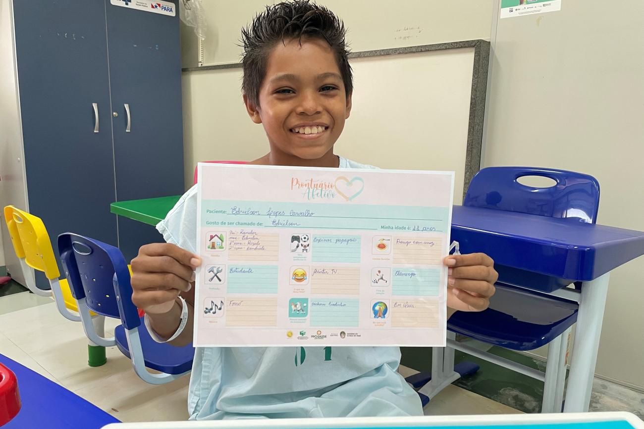 Edrielson Lopes Carvalho tem 11 anos, é flamenguista e gosta muito de ouvir forró. A brincadeira preferida do pequeno é empinar pipas e ele adora passar o tempo assistindo televisão. Ele está internado há alguns dias na clínica pediátrica do Hospital Regional do Baixo Amazonas (HRBA), em Santarém, e desde que chegou à unidade, todos os profissionais puderam conhecer um pouco mais sobre a vida, os gostos e os hobbies do menino.