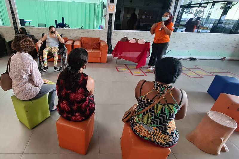 Presente no evento em combate ao câncer de mama realizado pelo CIIR, Gilca Alves Barreiros, 42, mãe do usuário Felipe Alves Barreiros, 17 anos, que acompanha o filho desde janeiro de 2022, para atendimento ao seu filho que é autista, ações como essas são muito importantes. "É de extrema necessidade que a informação chegue à população. Ter acesso a elas faz com que a gente fique atenta a nossa saúde e também podemos compartilhar com as demais pessoas fora daqui", afirmou Gilca, que aos 27 anos foi diagnosticada com câncer de mama, mas que com o diagnóstico precoce, venceu a luta contra a doença. "É importante aprender mais sobre o tema, porque quanto mais rápido o diagnóstico, mais rápido a cura", finalizou a acompanhante.