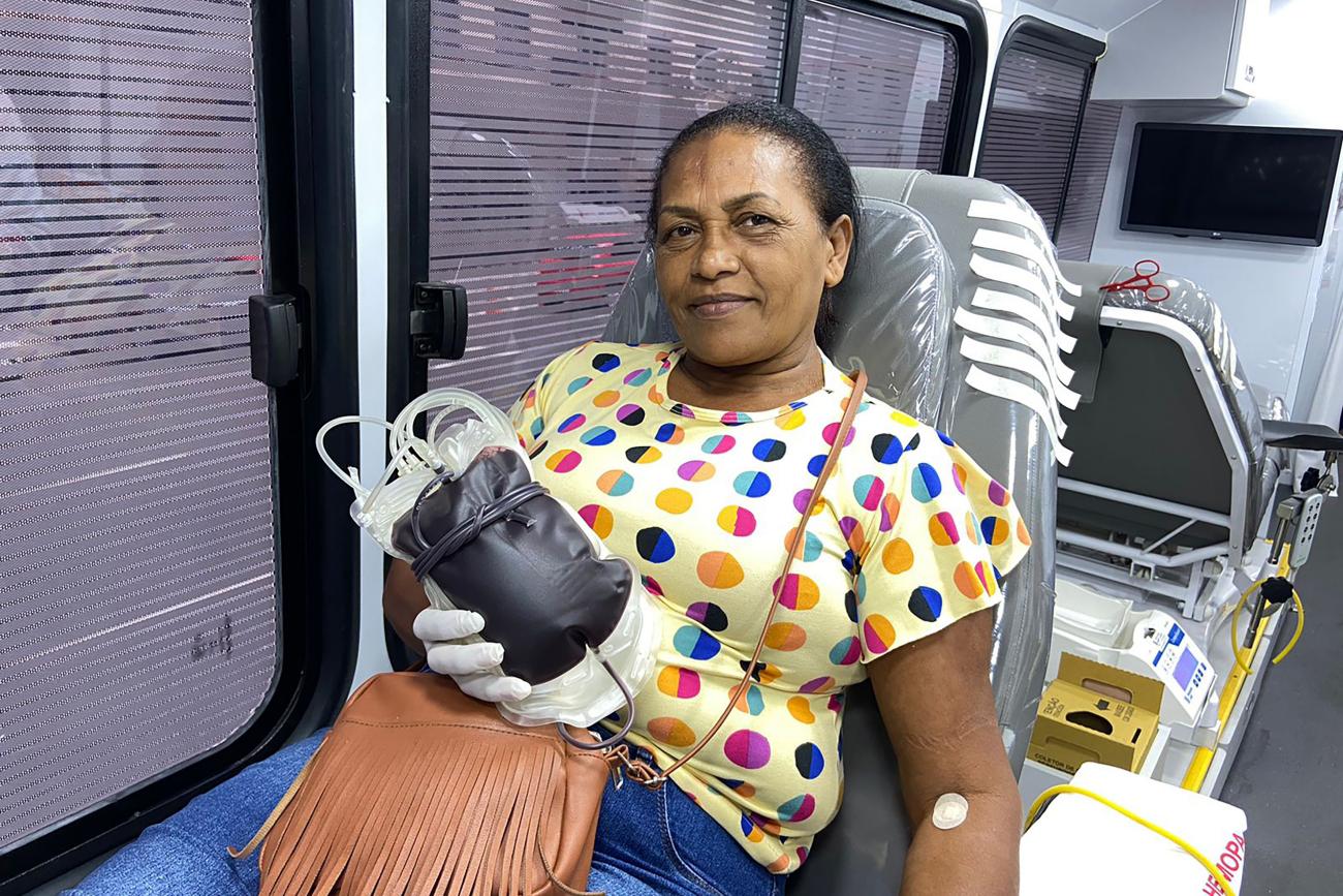 A última campanha de outubro foi promovida na última segunda-feira, 31 de outubro, em parceria com o Banco do Brasil, na Avenida Presidente Vargas, até as 14h, o que resultou em 24 doações de sangue que devem beneficiar cerca de 100 pessoas. A idosa Maria do Socorro Martins da Silva, 63 anos, é doadora de repetição, e esteve fazendo sua parte da campanha na Unidade de Coleta de sangue que estava na frente do prédio do BB. “Doar sangue é doar vida, doar amor. Sou agradecida por ter condições de fazer isso. Vejo muitos apelos de pessoas para doação de sangue. Quem puder doar, faça isso para salvar muitas vidas”.