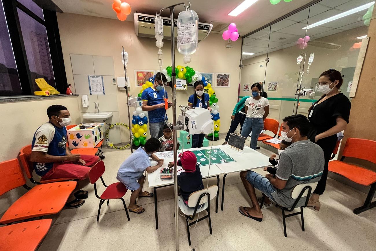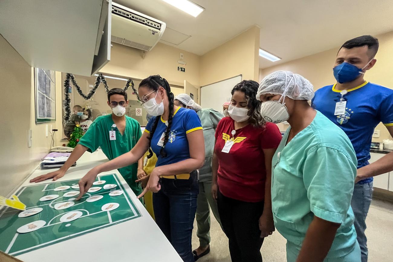 O Hospital Oncológico Infantil Octávio Lobo, em Belém, encerrou nesta quinta-feira (10) a campanha “Copa de Higiene das Mãos”. A ação, promovida pelo Serviço de Controle de Infecção Hospitalar (SCIH), conscientizou e orientou funcionários, usuários e acompanhantes sobre a importância do simples ato de lavar as mãos para impedir a propagação de doenças, por ser a principal medida contra a transmissão de infecções relacionadas à assistência à saúde (IRAS). Jogos, dinâmicas e paródias fizeram parte da programação realizada durante três dias no Hospital.