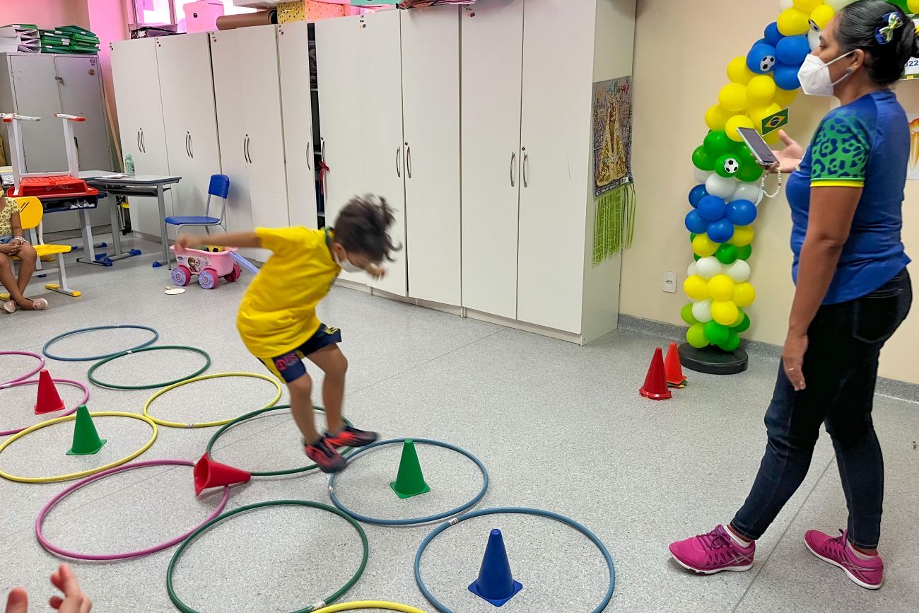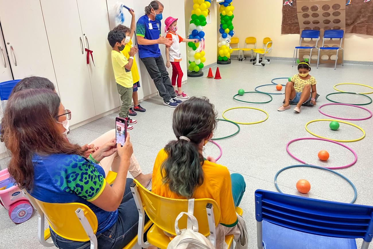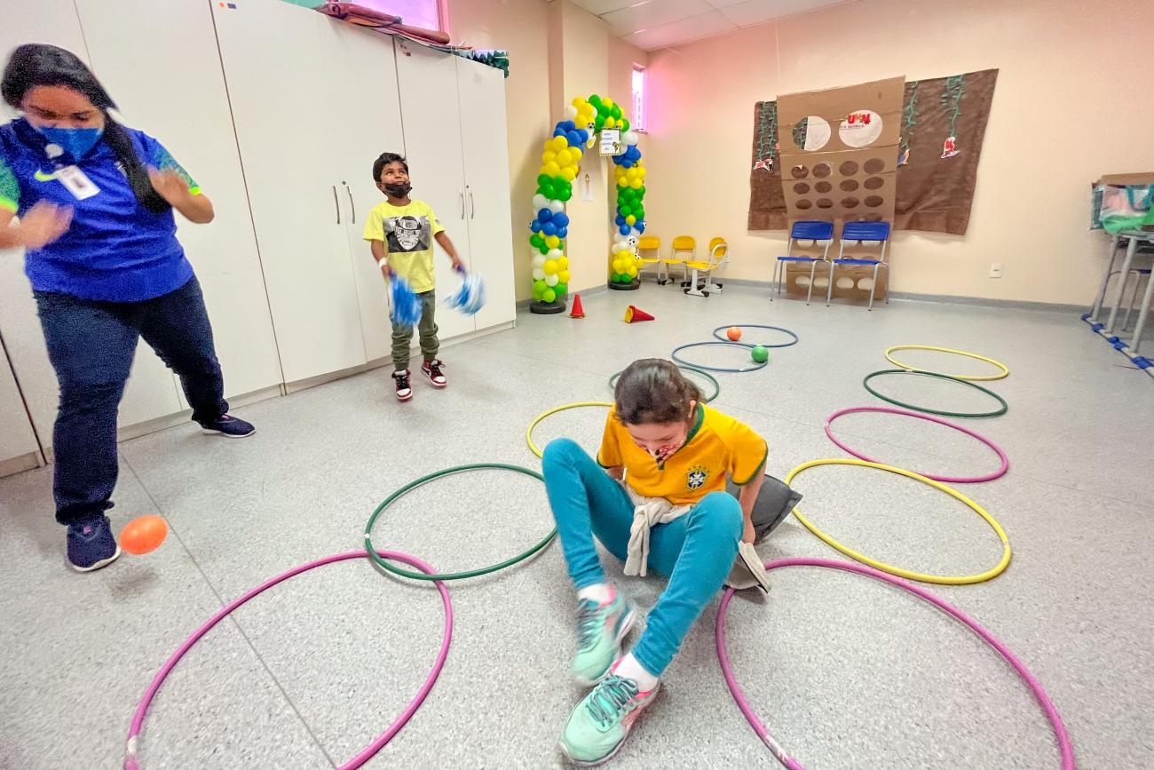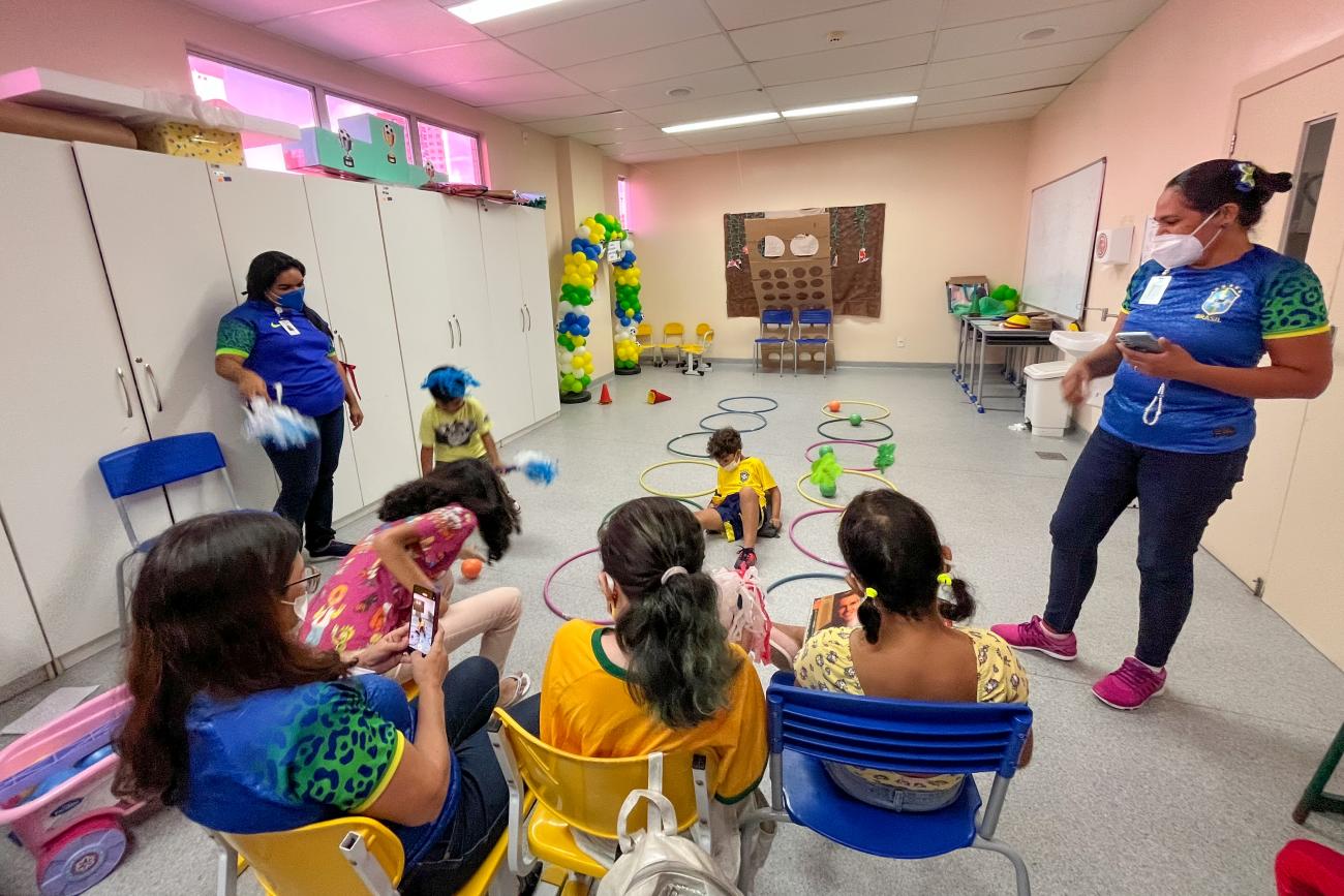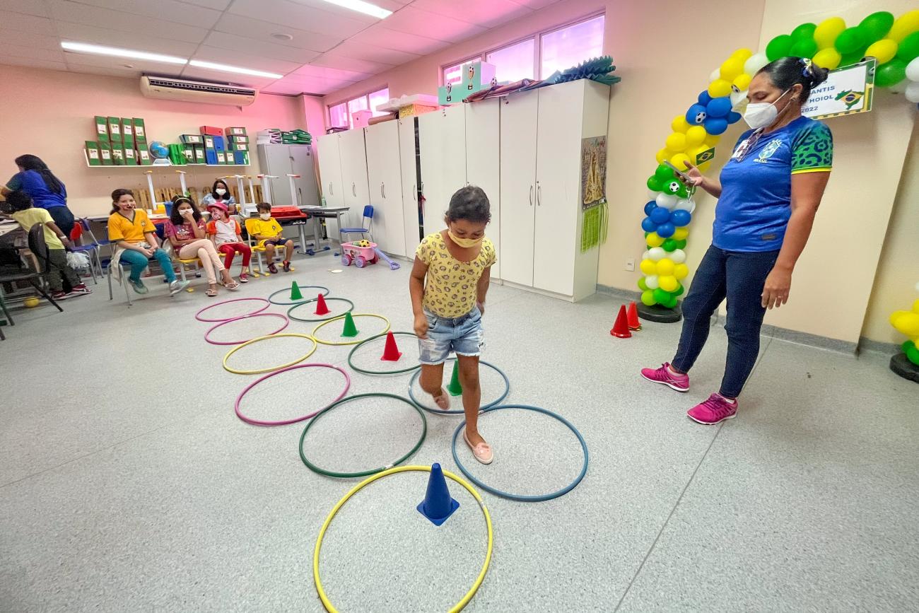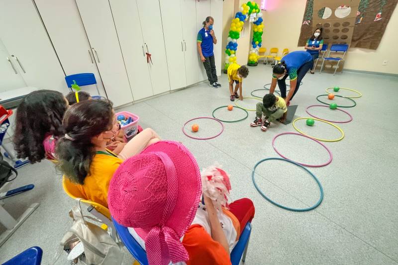 Crianças e adolescentes internados e em tratamento oncológico no Hospital Oncológico Infantil (Hoiol) participaram da V edição dos Jogos Estudantis da Classe Hospitalar Professor Roberto França, encerrada nesta terça-feira (22/11). A programação extracurricular trouxe o tema “A Copa do Mundo” que desenvolveu as potencialidades motoras, afetivas e sociais dos alunos. A classe hospitalar visa assegurar aos pacientes o direito à educação pela continuidade do processo ensino-aprendizagem e a reintegração ao grupo escolar.
