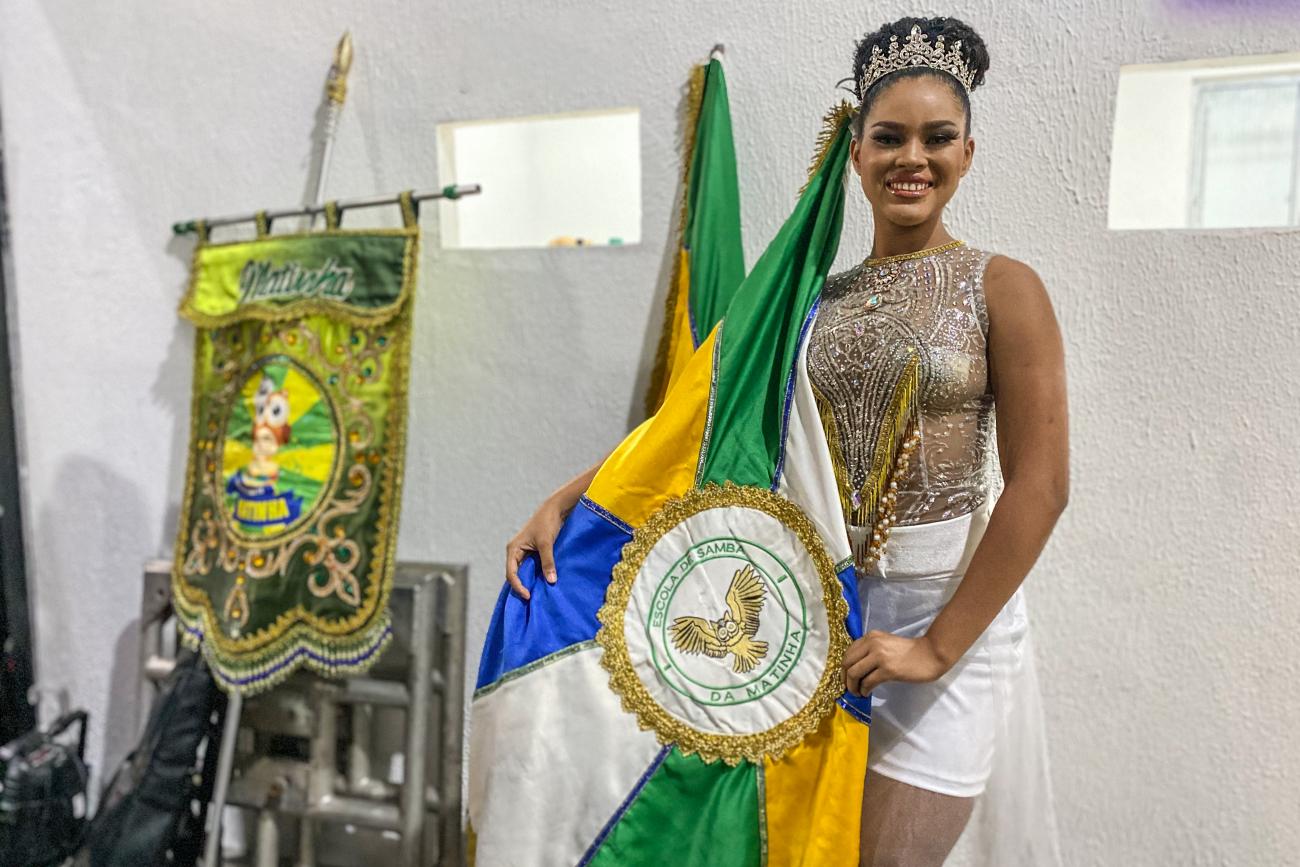 Porta-bandeira Ingrid Kacia: local adequado para ensaioO barracão, como o espaço é conhecido pela comunidade, foi fechado para a conclusão das obras, deixando a comunidade ansiosa pelo retorno às atividades. A porta-bandeira Ingrid Kacia contou que, desde criança, sonhava em ocupar esta posição na Escola, e agora vai poder ensaiar em um lugar apropriado. “Eu vinha desde pequena com a minha mãe, que trabalha como artesã para o Carnaval, e via as meninas ensaiando. Ajudava como podia. Desde 2019 sou porta-bandeira, e a maior dificuldade era conseguir lugar pra ensaiar. Às vezes, era na rua mesmo. Mas agora tudo será diferente”, garantiu.